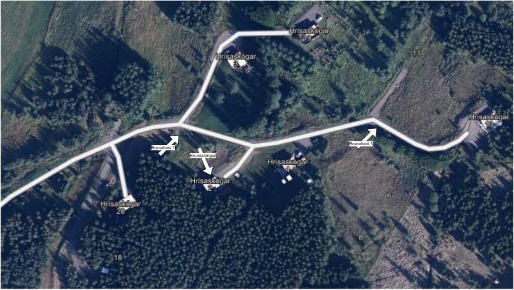 Í Hrísaskógum eru tveir brunahanar og brunaslöngur sem hægt er að grípa til ef td. sinueldur kemur upp. Annars ættu fyrstu viðbrögð alltaf að vera að hringja í 112 ef eldur kemur upp.